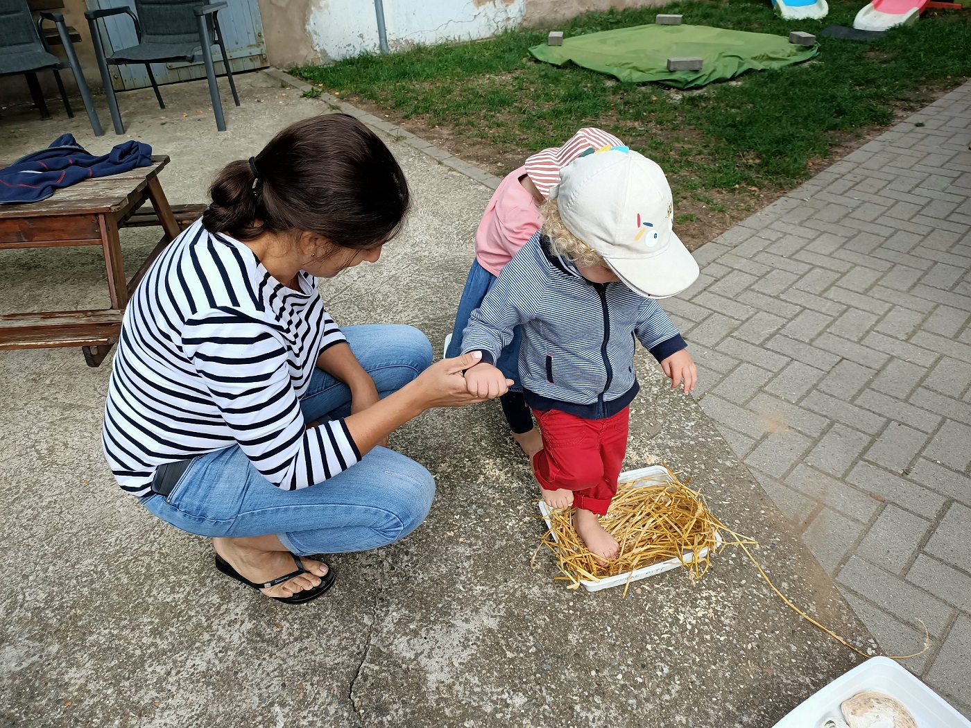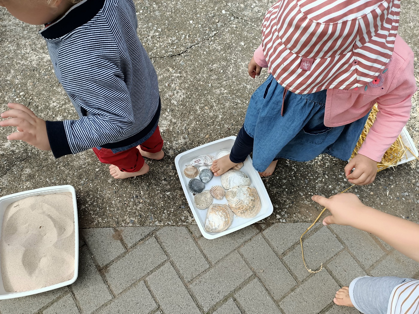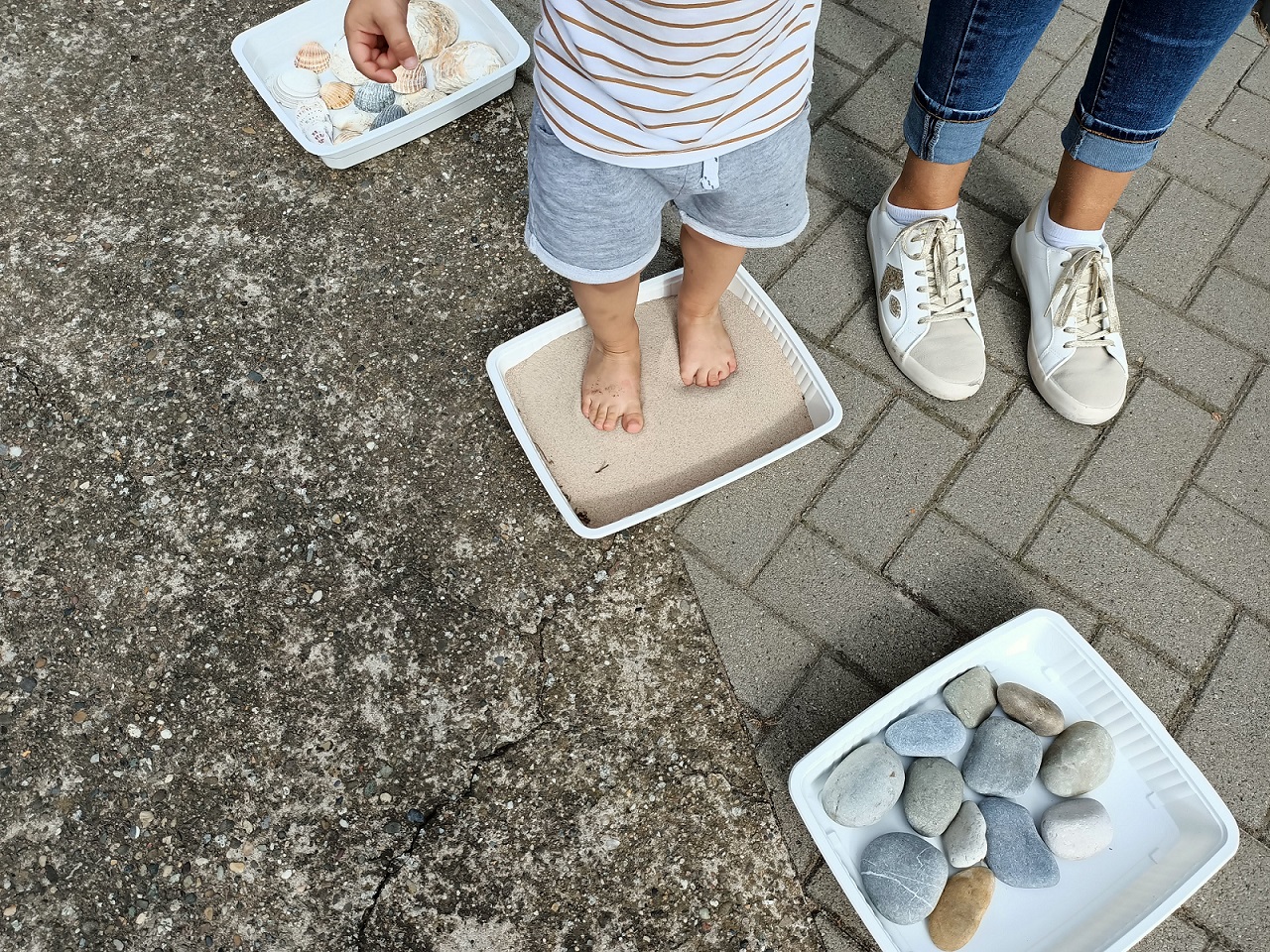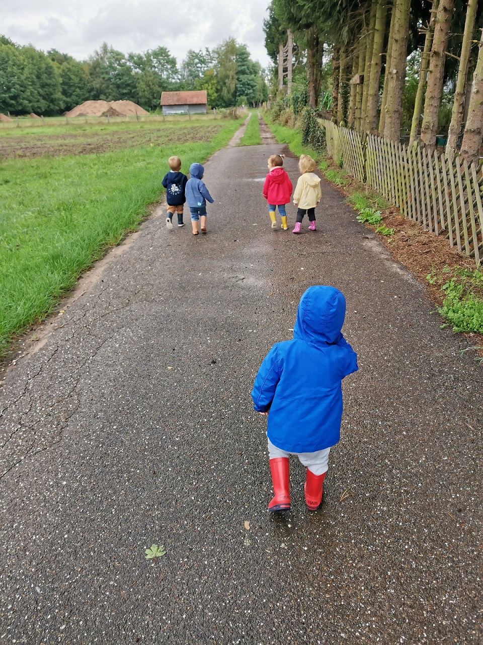 Dans la même semaine, nous passons d'un parcours sensoriel pieds nus dehors à une ballade sous la pluie...