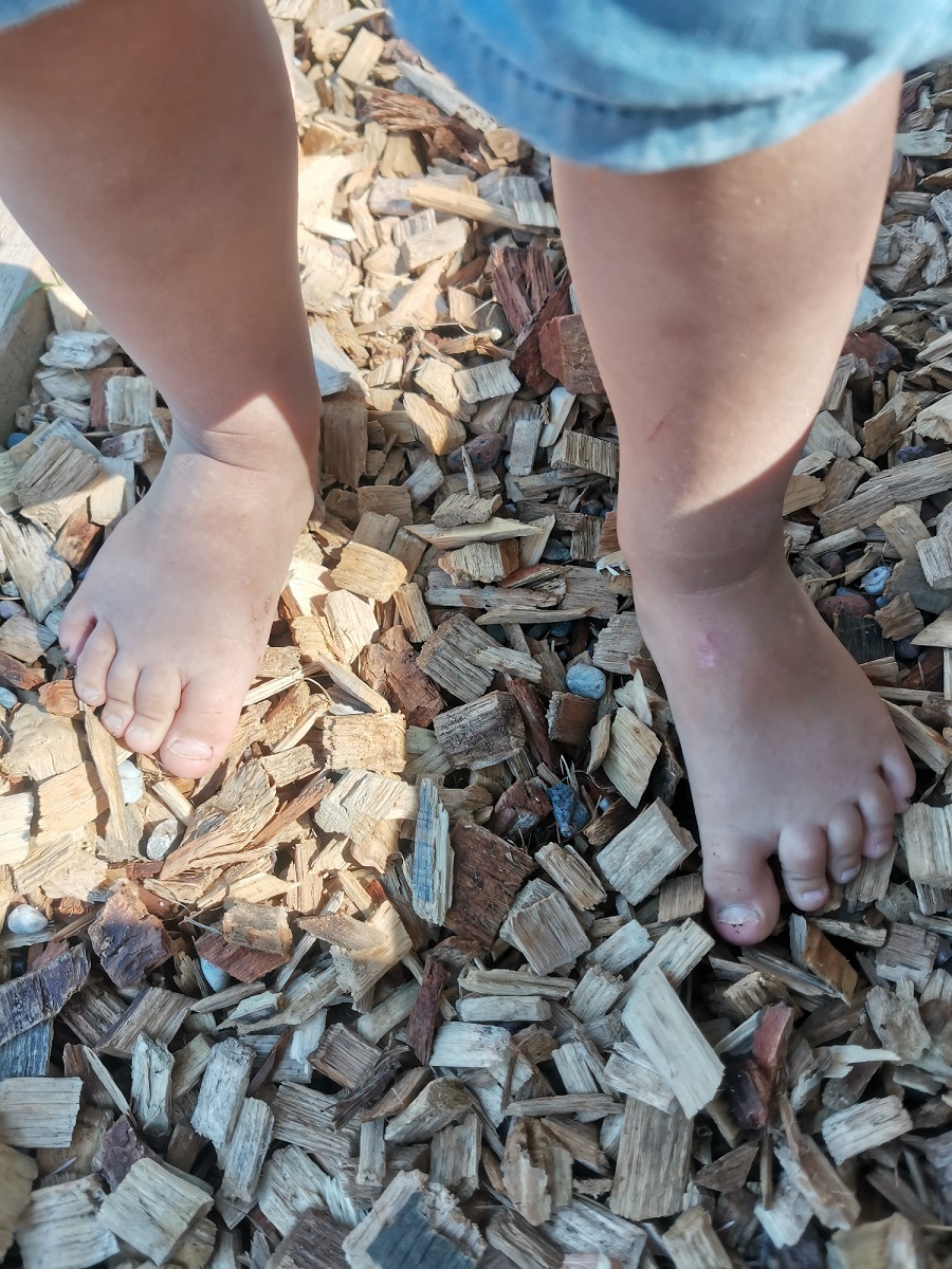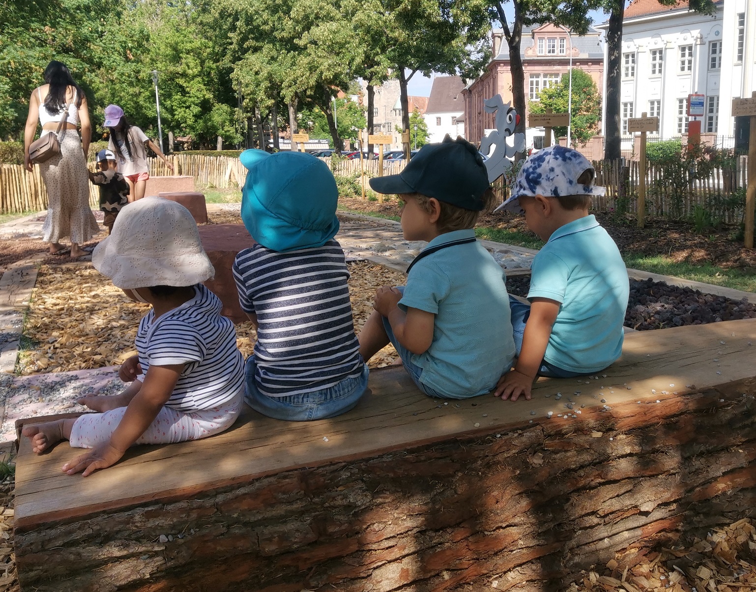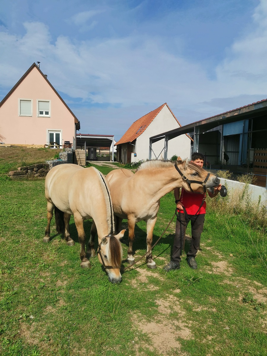 Il fait beau en ce mois de juillet, ce qui permet des activités extérieures ! Les enfants ont profité du parc pieds nus dans Haguenau. Ils ont fait une balade-découverte de la ferme des parents de Louise. Oh la la, ils sont grands les chevaux : Epona et Josée ! Il y a aussi Mauricette le cochon et une biquette.