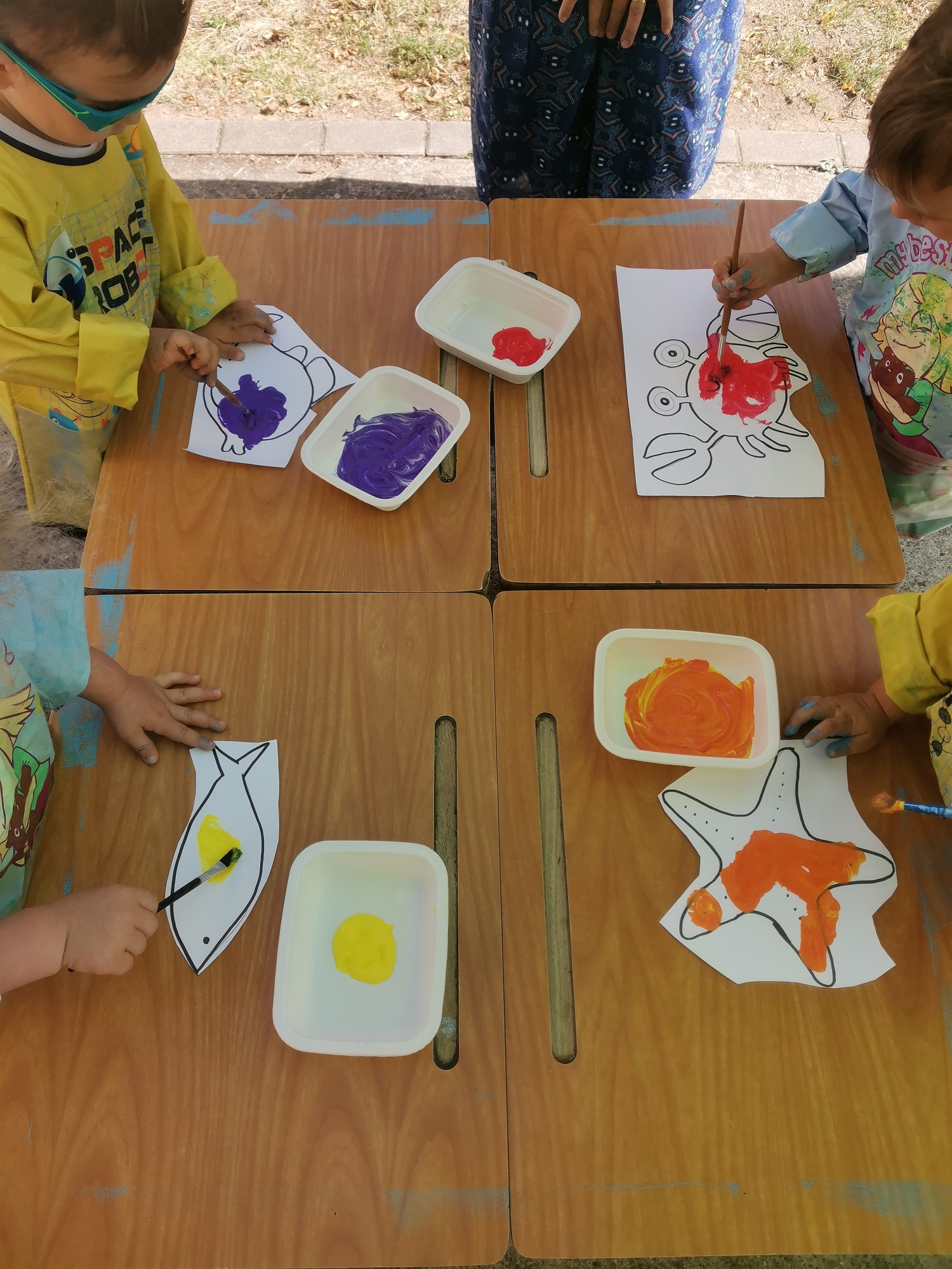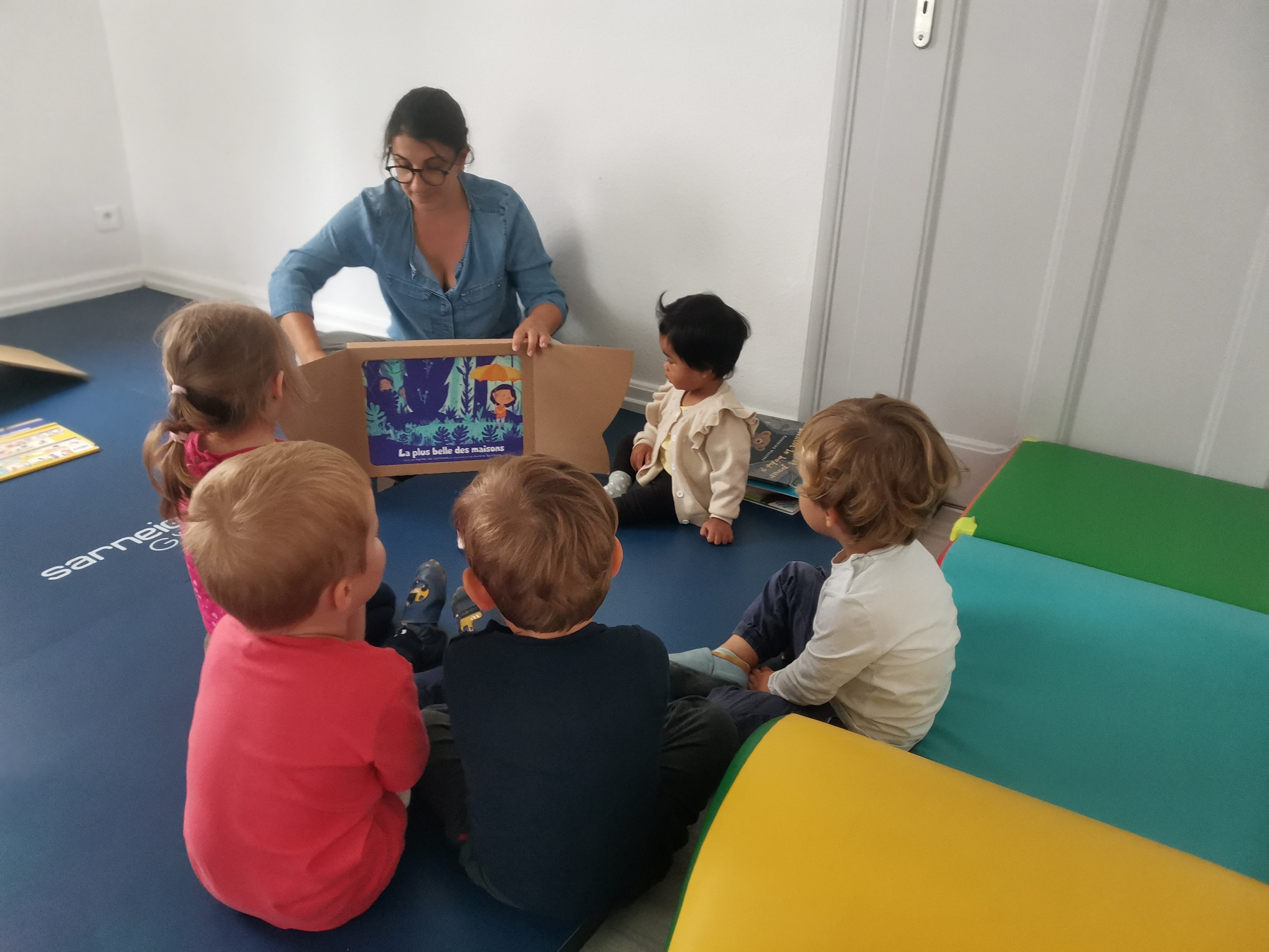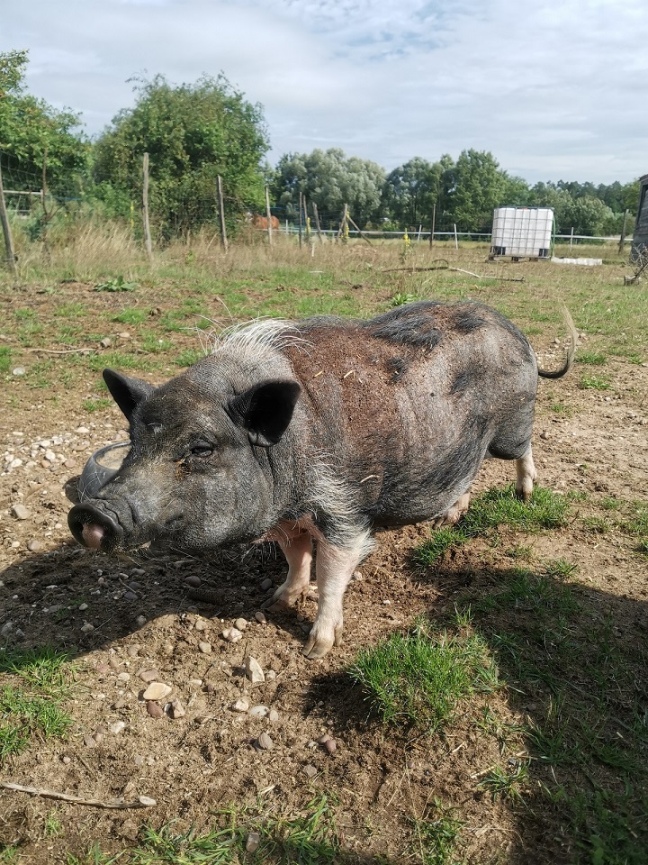 Il fait beau en ce mois de juillet, ce qui permet des activités extérieures ! Les enfants ont profité du parc pieds nus dans Haguenau. Ils ont fait une balade-découverte de la ferme des parents de Louise. Oh la la, ils sont grands les chevaux : Epona et Josée ! Il y a aussi Mauricette le cochon et une biquette.