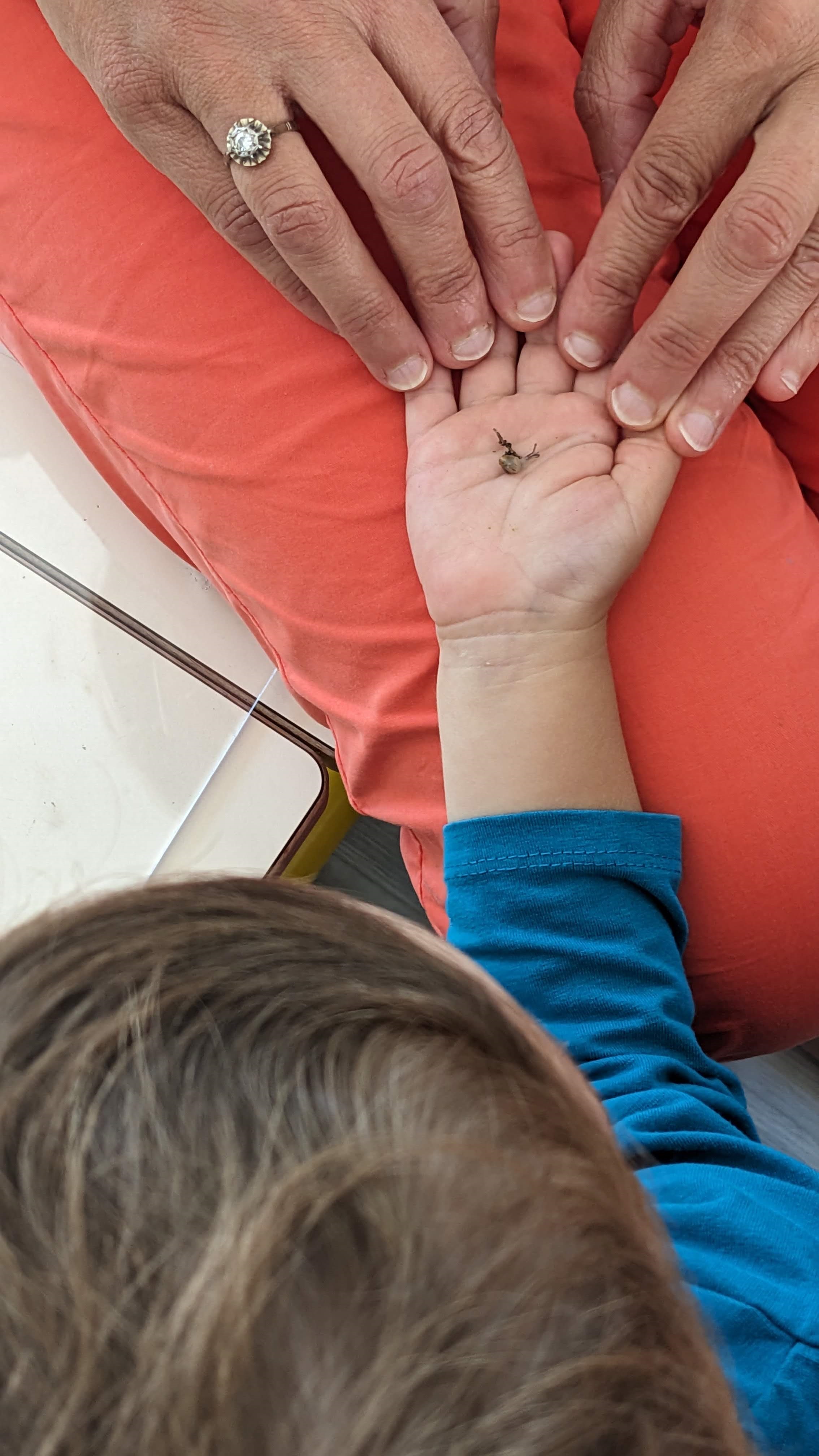 Après avoir découvert des bébés escargots dans un sac de terreau, nous les avons adopté ! Ils grandissent dans un vivarium. Parfois, les enfants demandent à les voir de près et même à les laisser se promener sur leurs mains !!